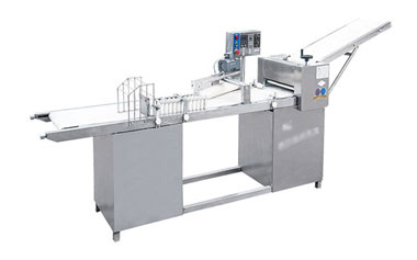 該機(jī)適用經(jīng)壓面機(jī)多次揉壓、適當(dāng)厚度和寬度的面皮且不間斷的供料,經(jīng)壓皮、卷皮、輸送……